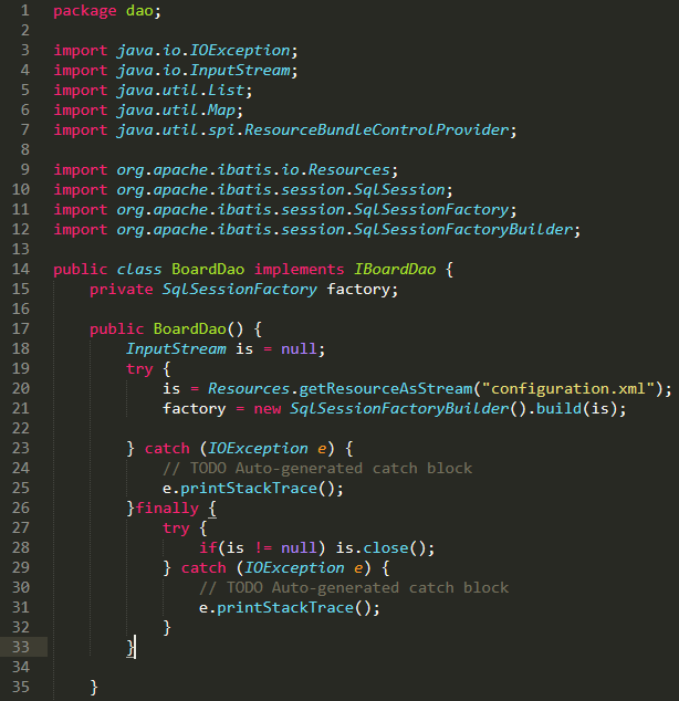 Mybaits가 만든 DAO가 Spring 위에서 동작해야 하기 때문에, 기존 Spring JDBC에서 사용했던 설정을 해주어야 한다.