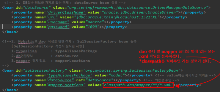 이미지1-1) Mybaits가 만든 DAO가 Spring 위에서 동작하게 만들기 : applicationContext.xml 작성