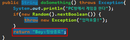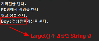 Boy 라는 target()은 "Boy:정상종료" 라는 String 값을 반환하도록 작성하고