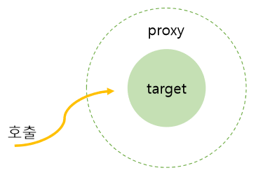 실제 기능이 구현된 target 객체를 호출하면 target이 직접호출 되지 않고 target을 감싸고 있는 proxy에 의해 target이 호출된다. 이러한 구조로 advice가 적용되어 만들어진 객 체를 proxy 객체라 한다.