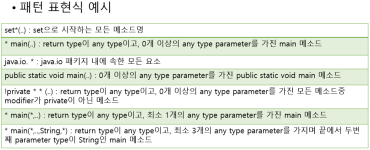 • Pointcut : 공통관심사항의 모듈이 어느 JointPoint를 사용할 지 결정하는 선택 기능