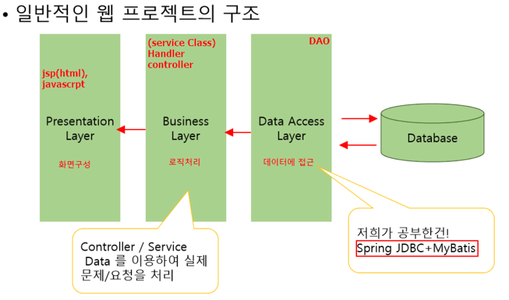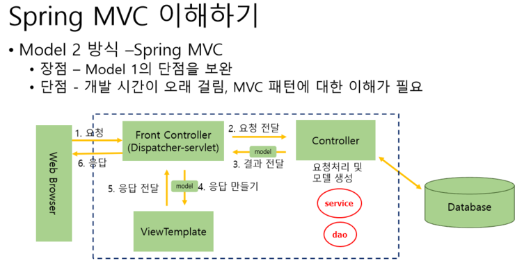 [Spring MVC(Model, View, Contoller)] : 웹 어플리케이션을 쉽게 제작할 수 있도록 구성요소를 정의해둔 웹어플리케이션 템플릿