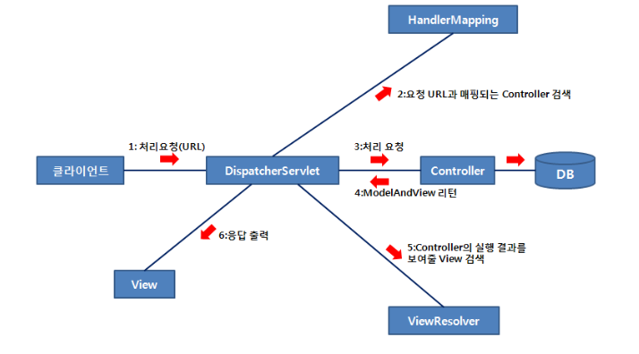 1. 클라이언트의 요청이 DispatcherServlet에 전달