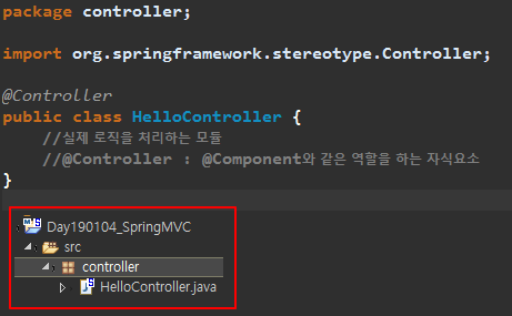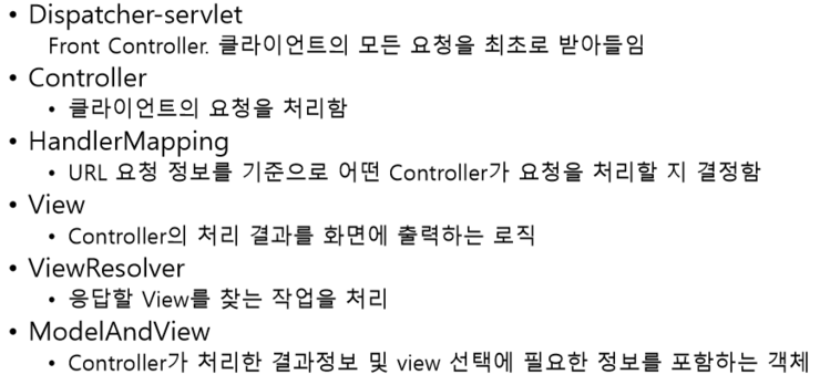 :MVC 패턴을 구현하기 위한 구성요소(controller,viewResolver,handlerMapping )들이 있는데, 구성요소들을 스프링컨테이너에 bean으로 등록해서 사용한다