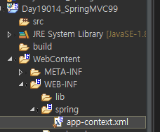 앞서 선언한 경로대로 WebContent 하위폴더 WEB-INF에 spring 이라는 폴더를 만들고 해당 폴더 안에 app-context.xml 파일을 생성해준다. 이때 xml 파일은 Spring Bean Configuration File 이다.