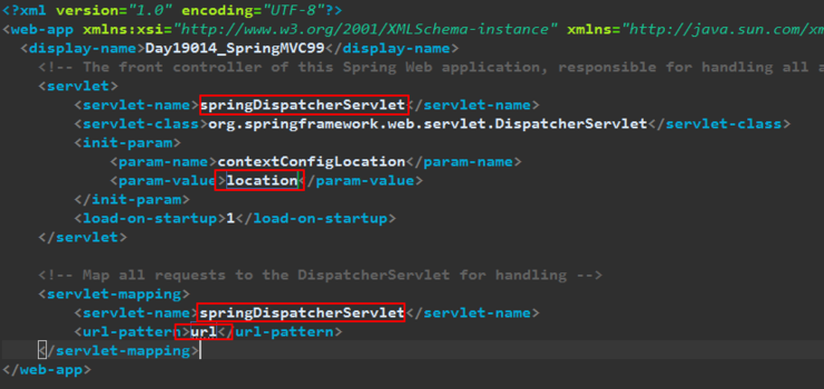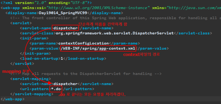 ex) dispatcher 의 이름의 servlet의 설정파일
