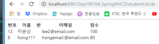 .... 다음은 별거 없음, 컨트롤러에서 jsp로 list를 보내고 jsp는 테이블로 리스트를 출력해냄 끄읏.
