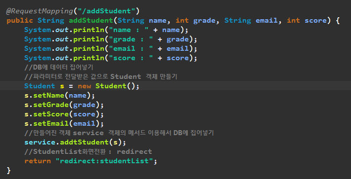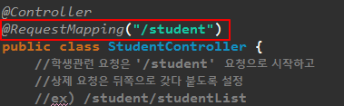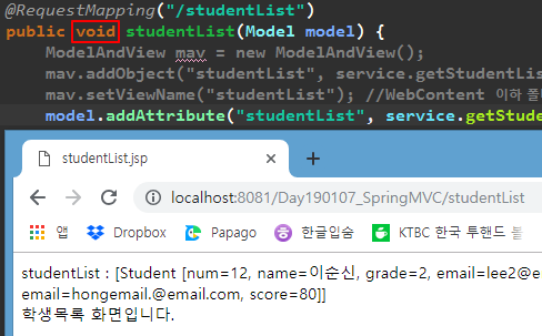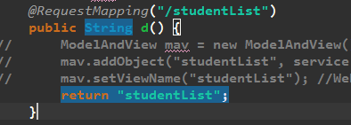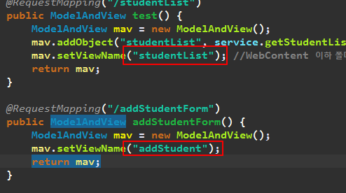예를 들어서 /studentList 라는 요청을 받았을 떄 해당 메서드가 void인 경우, viewName으로 'studentList'를 간주한다.