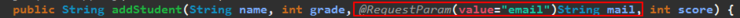 @handler에 선언된 파라미터의 이름으로 여청 파라미터가 들어오지 않으면, Mappiong 예외가 발생한다. 요청파라미터와 handler 파라미터가 이름이 다를 경우