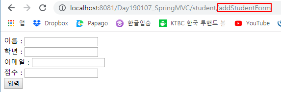 [http://localhost:8081/Day190107_SpringMVC/student/addStudentForm]