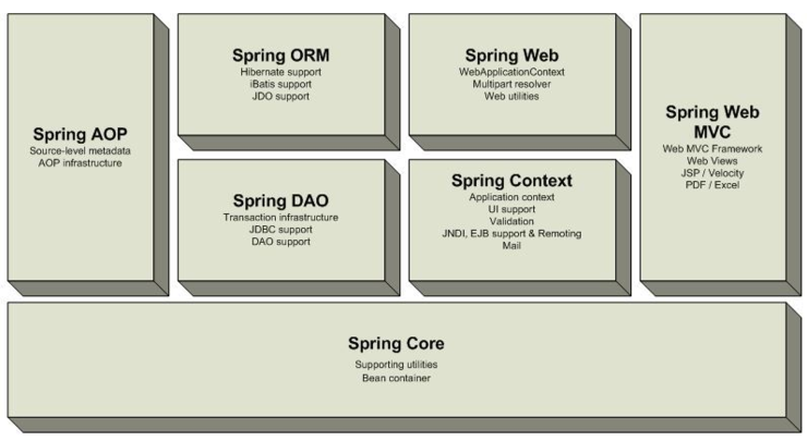 Spring ORM : 다른 프레임워크(ex: MyBatis)로 생성한 DAO를 스프링에서 사용할 수 있도록 도와주는 모듈