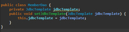 이미지4)DAO에 setJdbcTemplate 작성(.java) 및 bean으로 의존성 주입 (applicationContext.xml)
