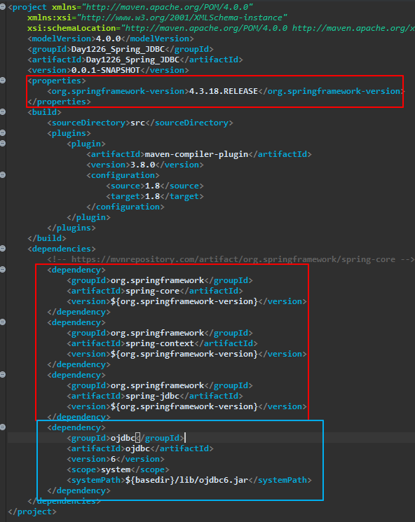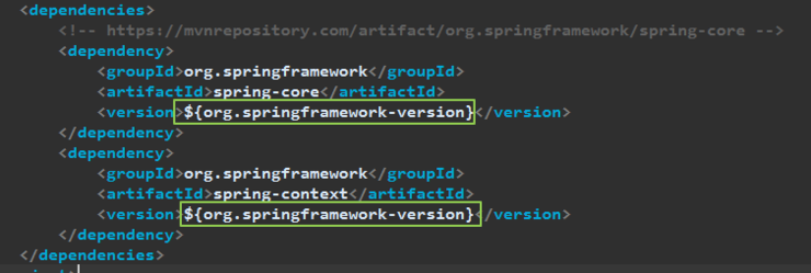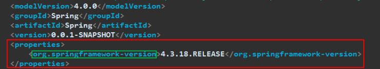 pom.xml 상위 부분에 <properties> 태그를 작성해주고 초록색 체크박스 부분에 들어갈 태그는 임의로 (ID, 식별자 개념)으로 적어 준 뒤 사용할 버젼을 적어준다.