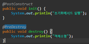 생성 후에, @PostConstruct 소멸 이전 @PreDestroy