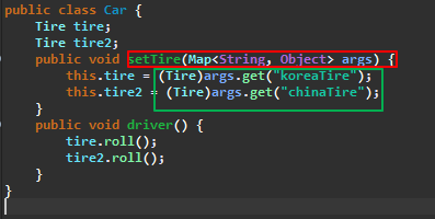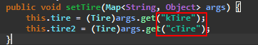 setTire를 호출하면서 Map을 인자로 넘겨주고 있는 코드이다. Map의 구조는 이미지1을 참고하여 작성 방법을 익히도록 하자.
