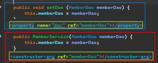 @Autowired의 타입 우선 매칭으로, 스프링 컨테이너에 등록 된 bean 들 중에서 MemberDao 타입에 맞는 bean을 가져다가, MemberService에 의존성을 주입해주는 것이다.