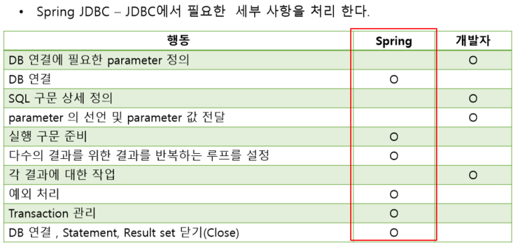 이미지1) JbdcTemplate 클래스가 지원해주는 작업들