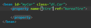 <property name=""> : setter를 활용해서 의존성을 주입하는 방법, name에 들어갈 것은 setter의 이름에서 set을 제외하고, 첫 번째 알파벳을 소문자로 적어준다.