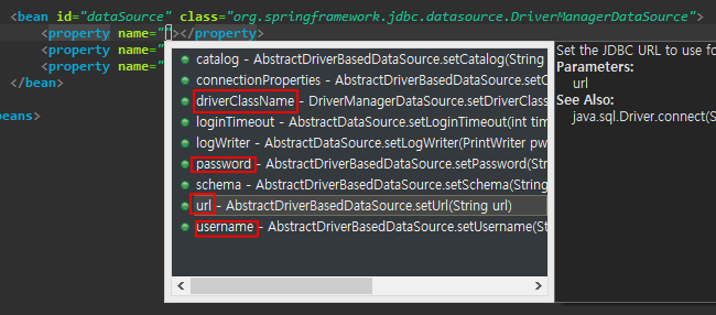DB에 접속하려면 url, username, password, DriverName을 알아야 한다.해당 정보를 Spring에서 관리하기 위해, DataSource라는 클래스의 객체를 이용한다.
