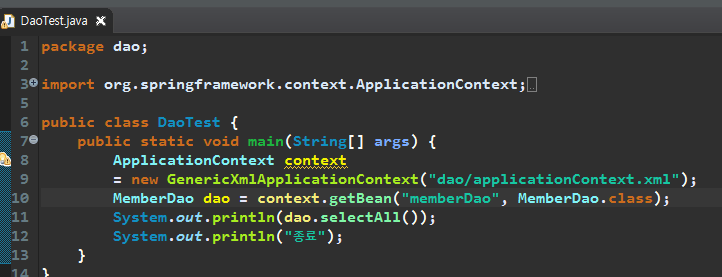 이미지3) 테스트해보기 bean으로 등록한 MemberDao interface 활용