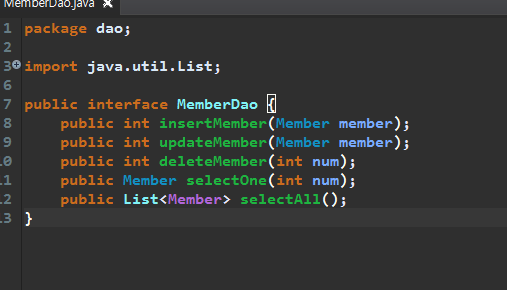 이미지2) MemberDao 클래스 코드 (인터페이스)